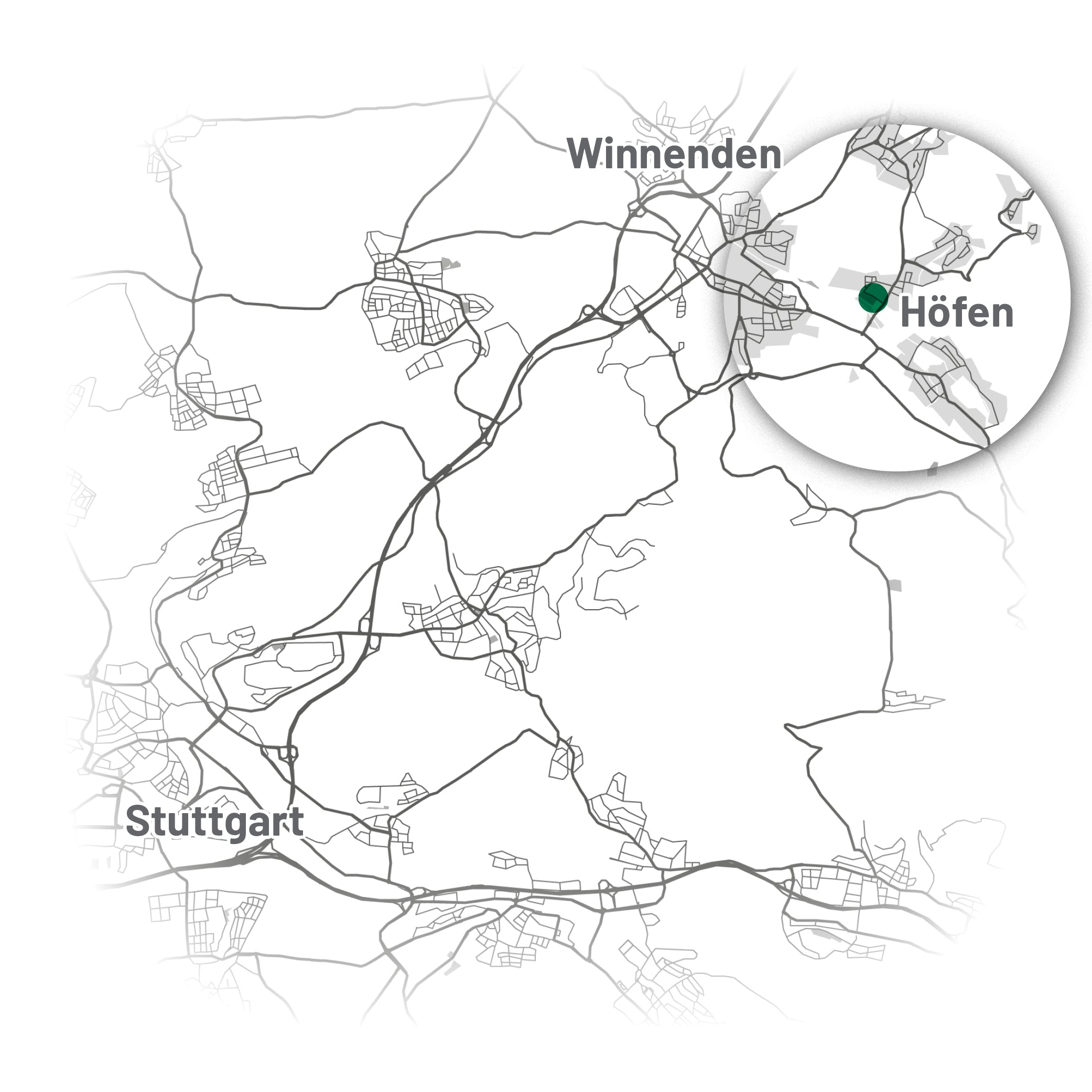 Das fertiggestellte Neubauprojekt in der Bildackerstraße 35–39 und der Winnender Straße 28–30 befindet sich im Winnender Stadtteil Höfen, einer gefragten Wohnlage mitten im Rems-Murr-Kreis. Höfen liegt rund 20 Kilometer nördlich von Stuttgart und verbindet eine ruhige, naturnahe Umgebung mit der Nähe zum Stadtzentrum. Einkaufsmöglichkeiten für den täglichen Bedarf sind fußläufig erreichbar. Diese Kombination macht den kleinen, schwäbischen Ort besonders attraktiv. Über die B14 erreichen Sie die Stuttgarter Innenstadt in etwa 20 Autominuten.