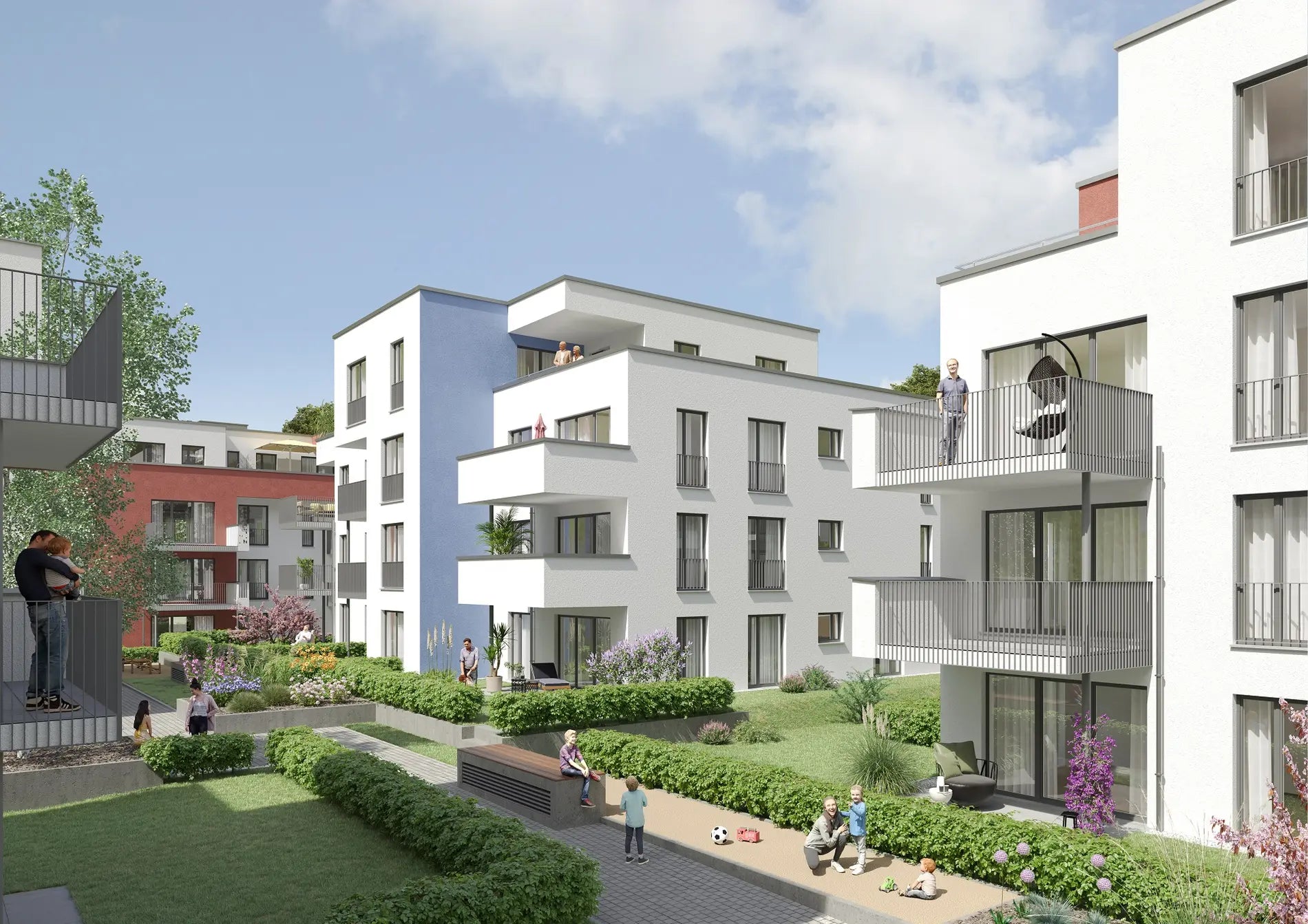 Das moderne Wohnquartier mit 12 Doppelhaushälften und 48 Eigentumswohnungen ist bereits fertiggestellt. Es überzeugt durch hochwertige Bauweise, zeitgemäße Architektur und ein ausgezeichnetes Preis-Leistungs-Verhältnis – perfekt für ein modernes und komfortables Wohnen in Winnenden-Höfen.